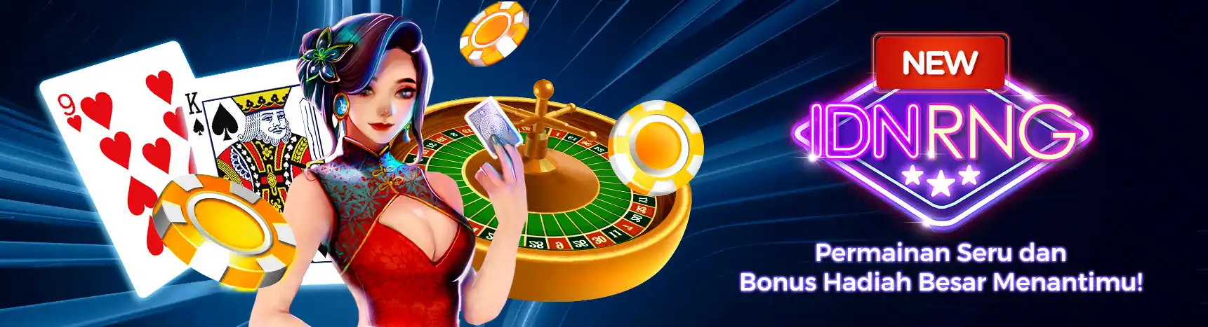IDN provider game terbaik Asia menghadirkan IDNRNG, Kini tampilan lebih atraktif. Ceme Duel, Black Jack, Roulette hingga Baccarat akan menemanimu mencapai KEMENANGAN dengan peluang lebih besar. Coba sekarang!